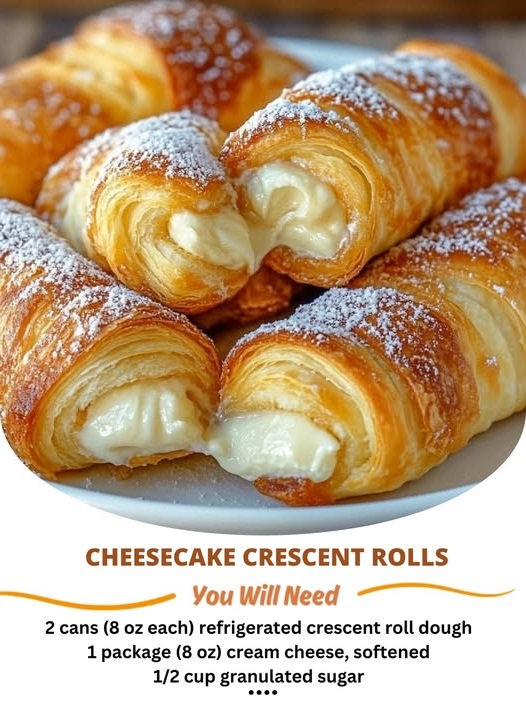 Here’s a delicious, quick, and crowd-pleasing recipe for Cheesecake Crescent Rolls — buttery, flaky crescents filled with creamy vanilla cheesecake and topped with cinnamon sugar. They taste just like a shortcut version of sopapilla cheesecake bars!