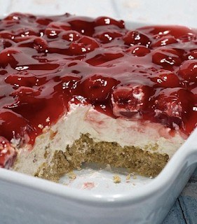 Spoon cherry pie filling evenly over the top.
