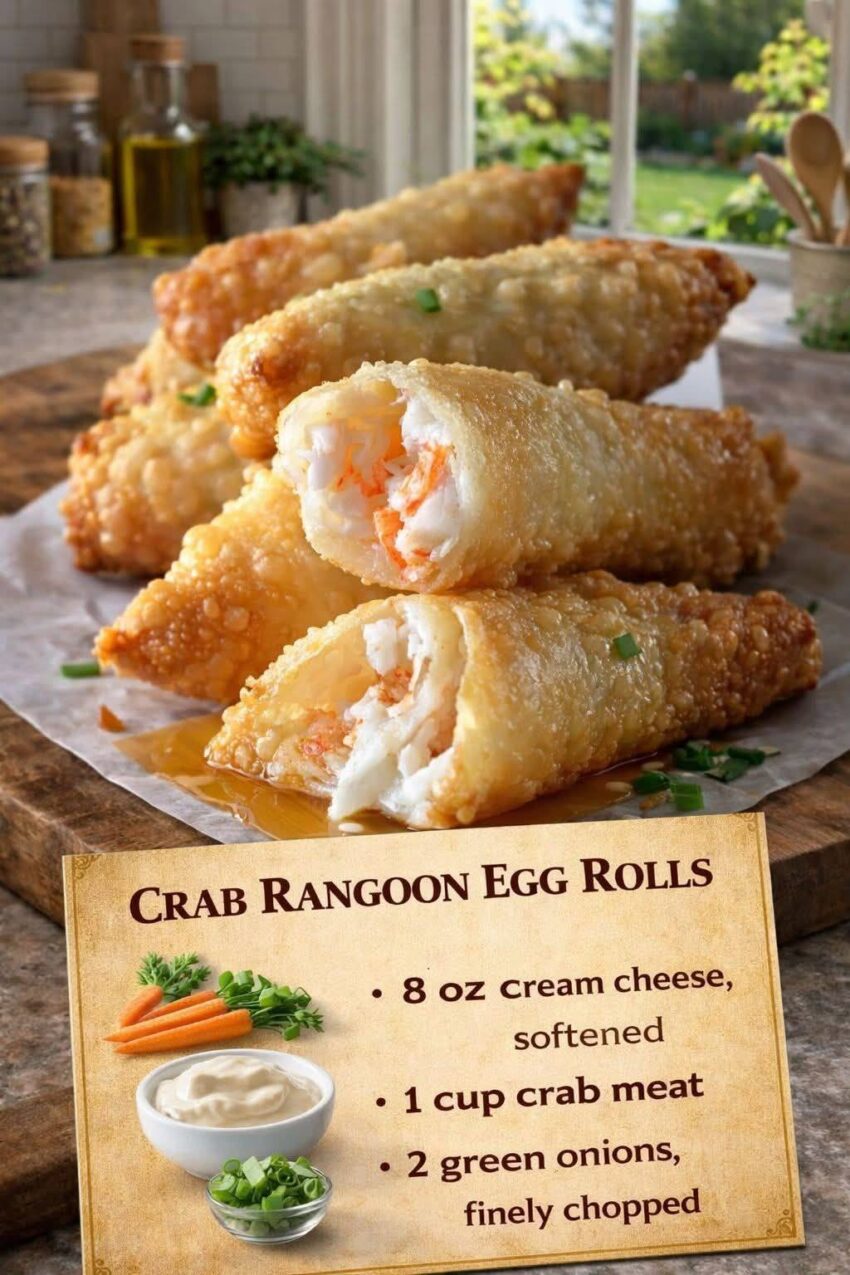 A fun twist on the classic appetizer—crispy egg rolls filled with creamy crab and cheese, just like crab rangoon but bigger and crunchier!