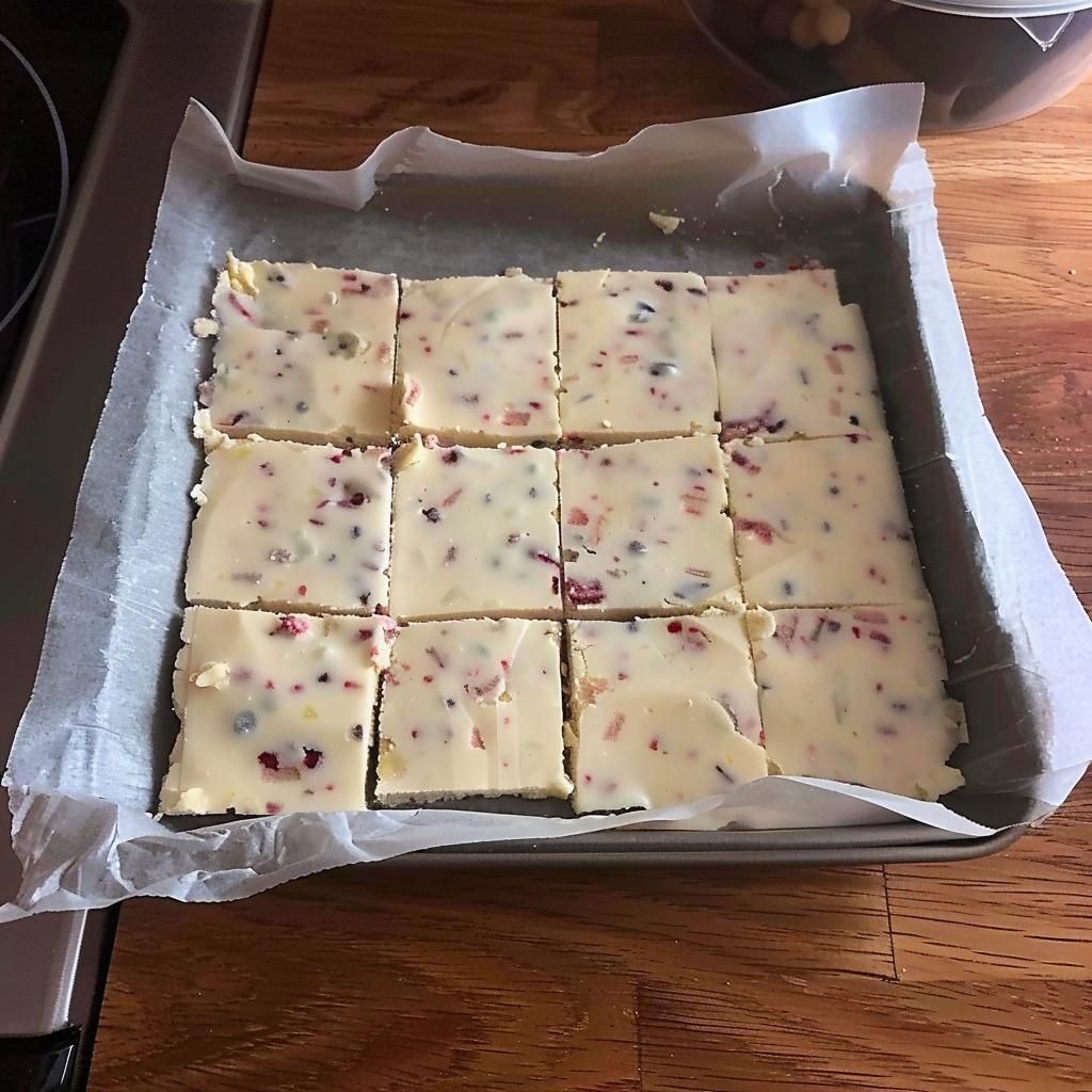 Stir in dried cranberries, white chocolate chips, and nuts (if using).