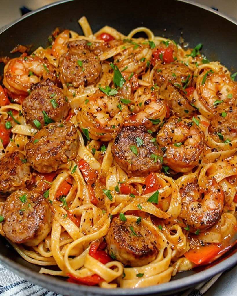 🍤 Creamy Cajun Shrimp Pasta with Sausage