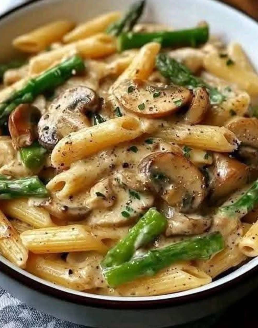 🍝 Creamy Mushroom & Asparagus Chicken Penne