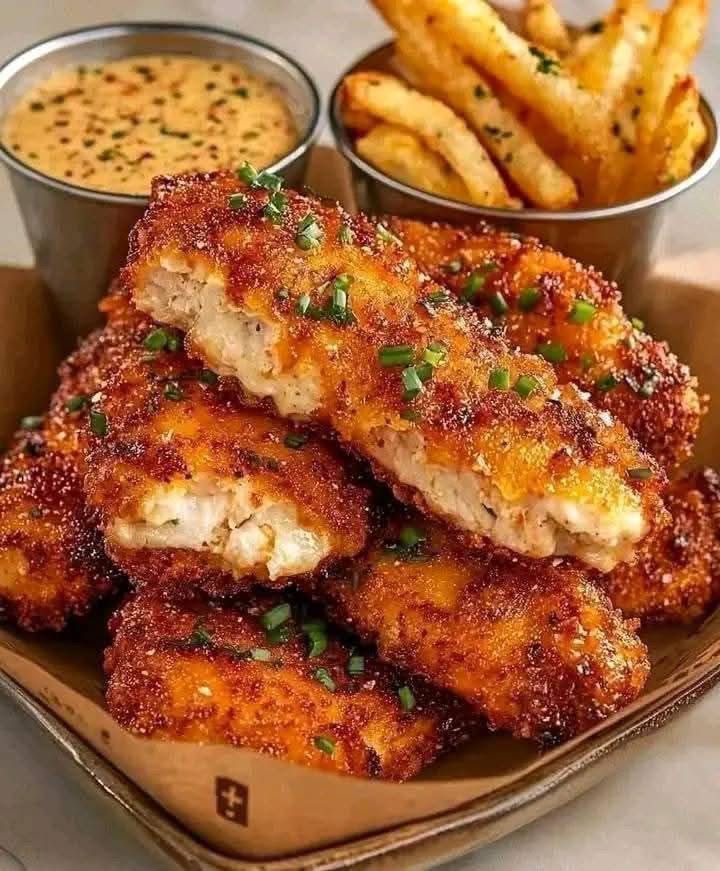 Here’s a recipe for Crispy Chicken Tenders that are juicy on the inside and super crunchy on the outside — plus 3 optional dipping sauces to go with them!