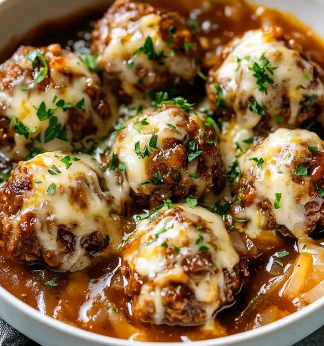 📝 Crockpot French Onion Meatballs