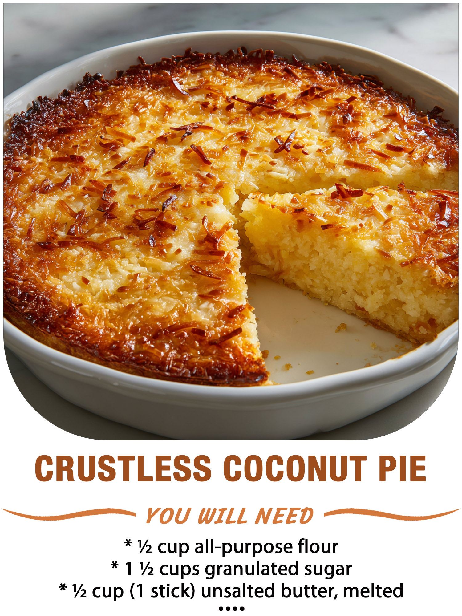 🥥✨ Crustless Coconut Pie (Also Known as “Impossible Coconut Pie”)