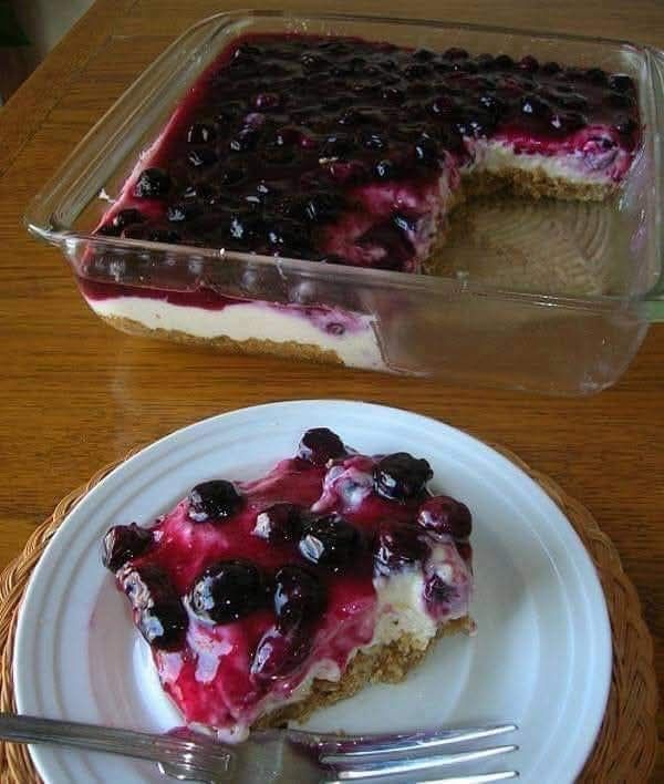 Spoon the blueberry topping over the chilled cheesecake before serving.