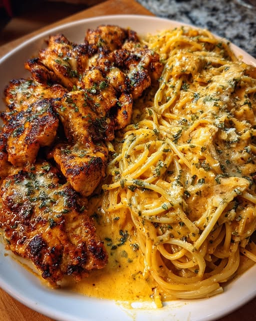 🍝 Garlic Parmesan Chicken Spaghetti with Cajun Three-Cheese Cream Sauce