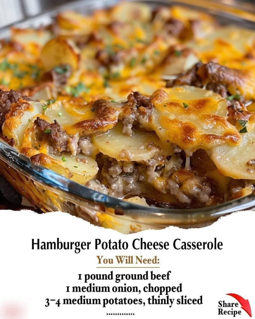 Here’s a classic Hamburger and Potato Casserole—simple, cozy, and very weeknight-friendly.
