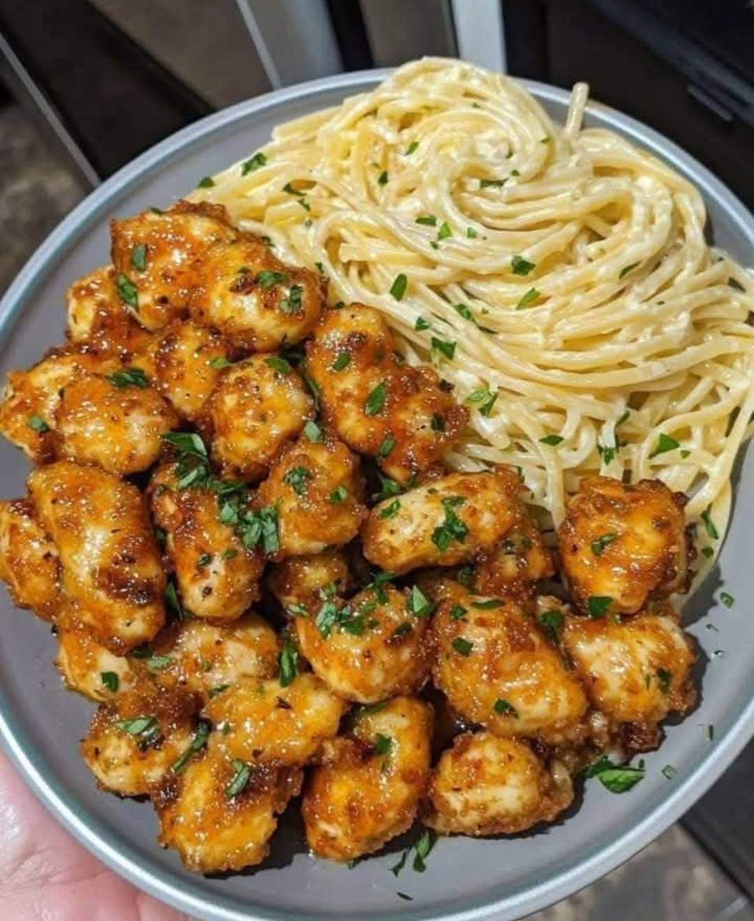 🍗 Lemon Garlic Butter Chicken Bites with Savory Parmesan Linguine