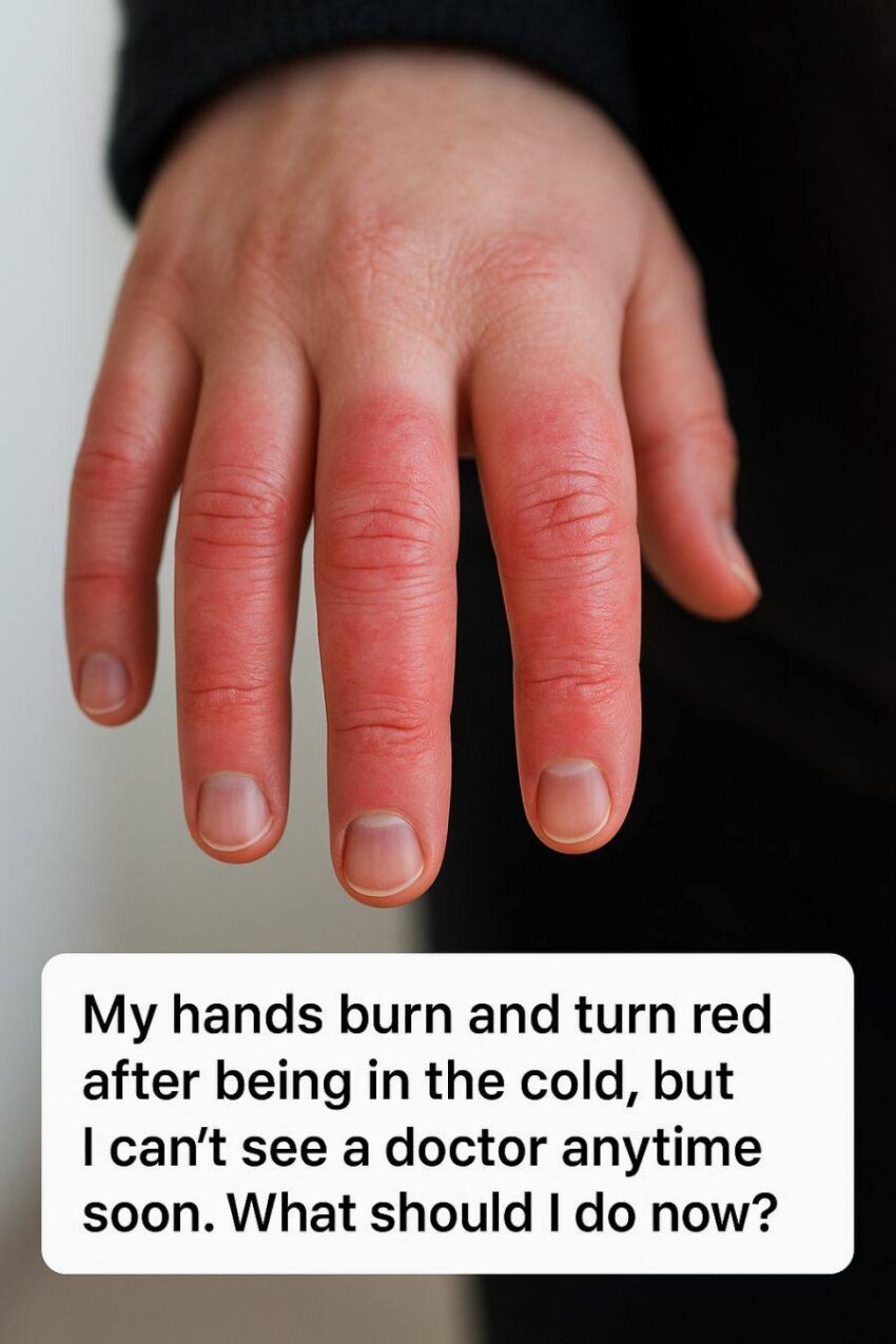 I’m glad you reached out—what you’re describing sounds like cold-induced skin reaction, and while it’s often not dangerous, it can be uncomfortable and should be managed carefully. Here’s what to do safely until you can see a doctor: