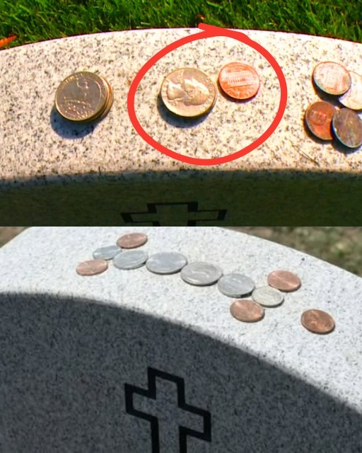 Leaving coins on the gravestone of a military service member is a long-standing military tradition. Each type of coin has a specific meaning: