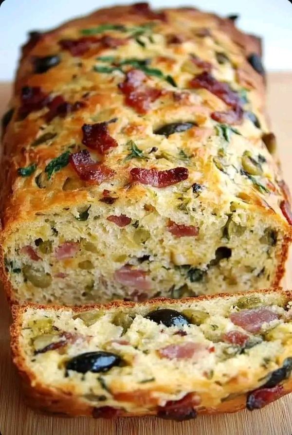 Oh, that’s a fantastic choice — Olive, Bacon, and Cheese Bread is a French-style savory loaf (cake salé) that’s perfect for brunch, picnics, or a wine-and-cheese night. 🫒🥓🧀 It’s soft inside, full of salty, smoky, cheesy flavor, and it smells amazing as it bakes!