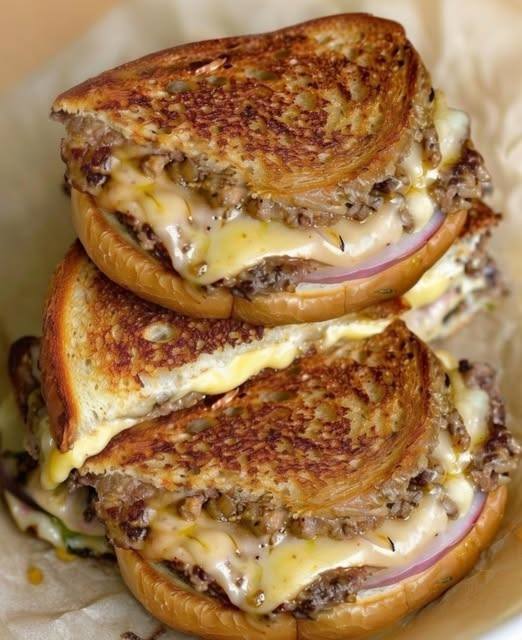 Divide ground beef into 2 thin, wide patties (shape them roughly to match your bread size — they’ll shrink a bit).