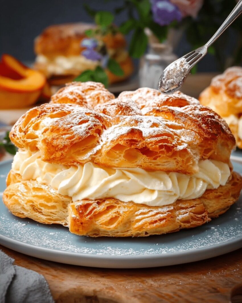 Here’s a delicious Peach Cream Puff Pastry Cake recipe — flaky, creamy, fruity, and perfect for dessert or afternoon tea. It combines puff pastry, fresh peaches, and a luscious cream filling.
