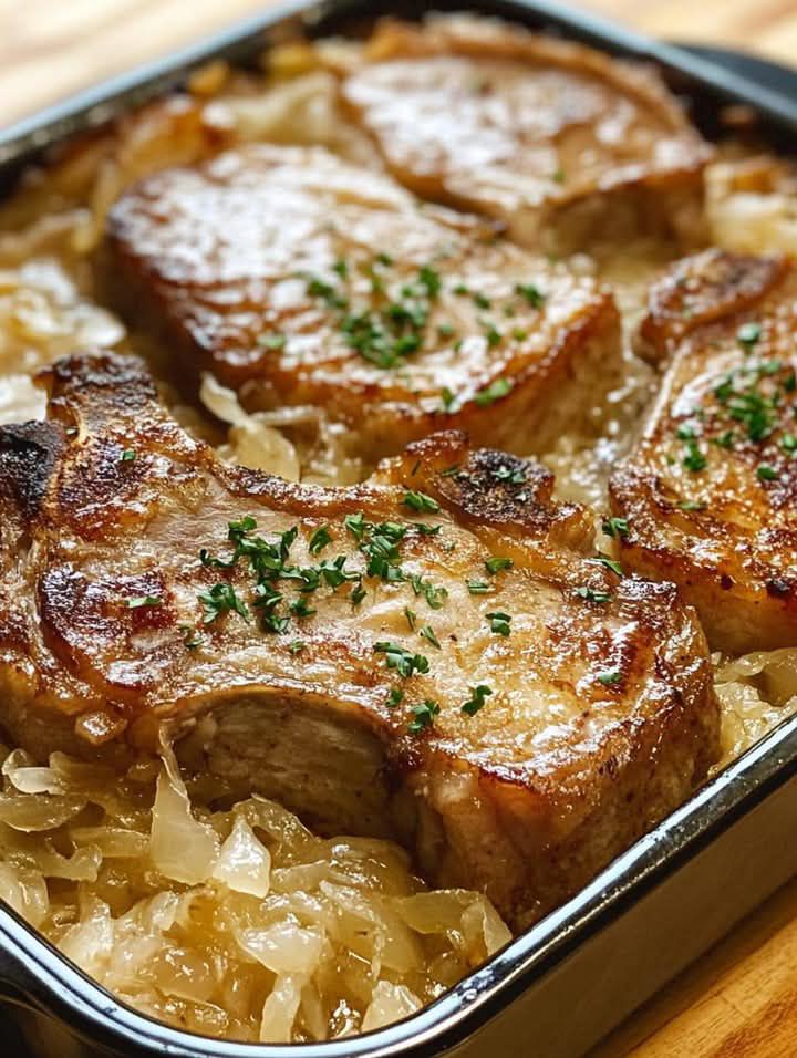 Here’s a classic way to make a Pork Chop and Sauerkraut Casserole—a hearty, comforting dish that’s simple to prepare.