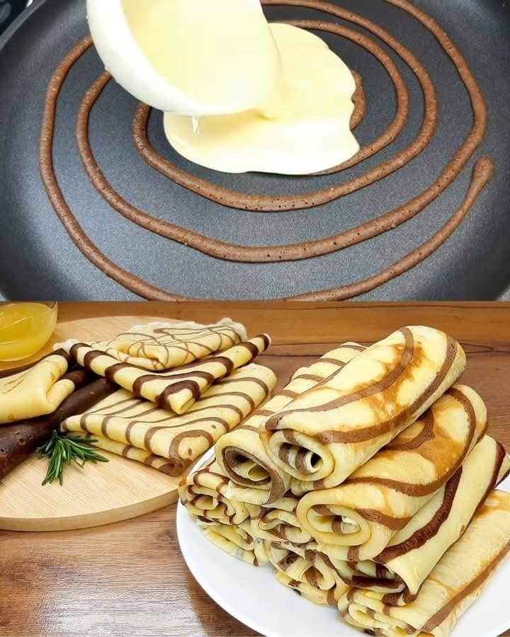 🥞 Chocolate–Vanilla Spiral Pancakes (simple method)