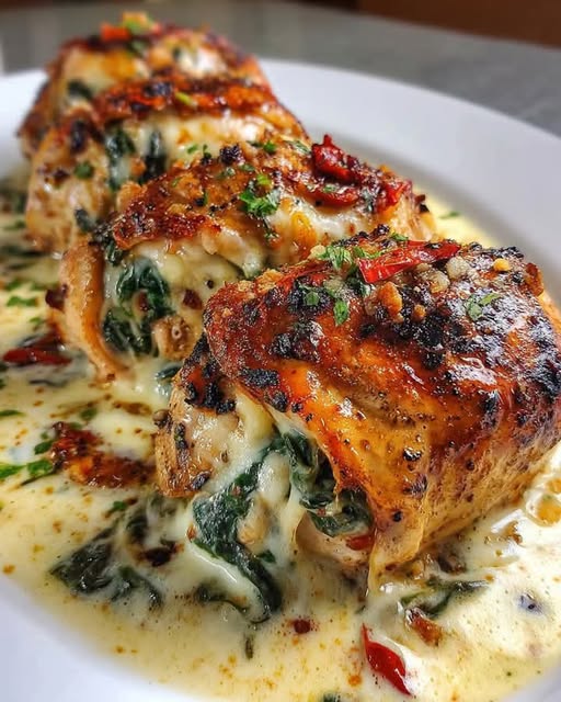 🧀 Roasted Red Pepper, Spinach, and Mozzarella Stuffed Chicken Breasts