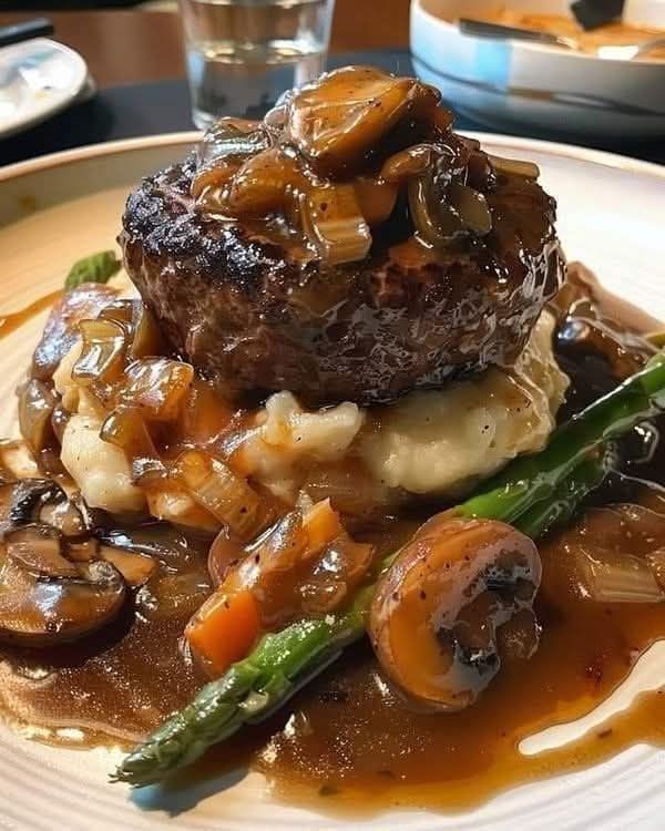 🥩 Salisbury Steak with Garlic Mashed Potatoes & Mushroom-Onion Gravy