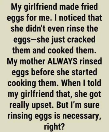 💡 Bottom line: For most eggs, do NOT rinse before cooking. Only remove visible dirt gently, and always cook eggs properly.