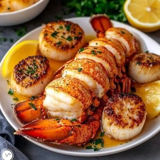 Here’s a delicious, restaurant-style recipe for making Succulent Garlic Butter Lobster & Scallops with Herbs at home 🦞🦐🌿