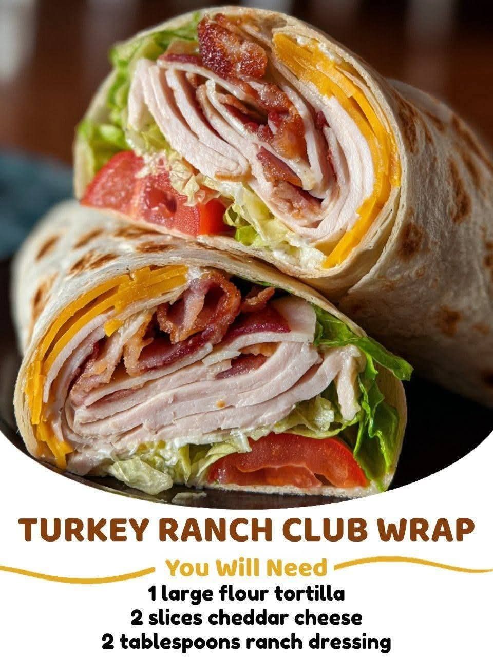 Ah yes! 🥗🌯 The Turkey Ranch Club Wrap is a delicious, handheld sandwich that combines tender turkey, crispy bacon, fresh veggies, and creamy ranch dressing — all wrapped up in a soft tortilla. Perfect for lunch or a light dinner.